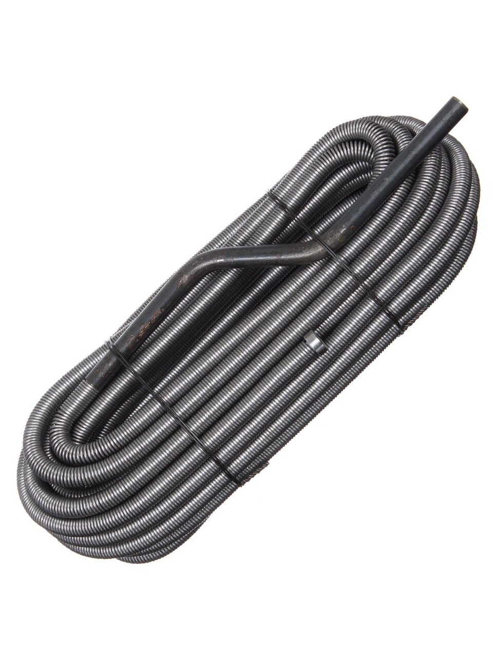 Трос сантехнический диаметром 13,5 мм изготовлен из пружинной проволоки диаметром 1,8 мм и представляет собой полую спираль от 2,5 до 25 метров с ручкой в виде кривого вала на конце.