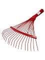 Грабли веерные металлические имеют 18 плоских зуба. Изделие окрашено, что обеспечивает надежную защиту от коррозии. Расположенная сверху распорка усиливает пружинящий эффект и дополнительно упрочняет конструкцию.