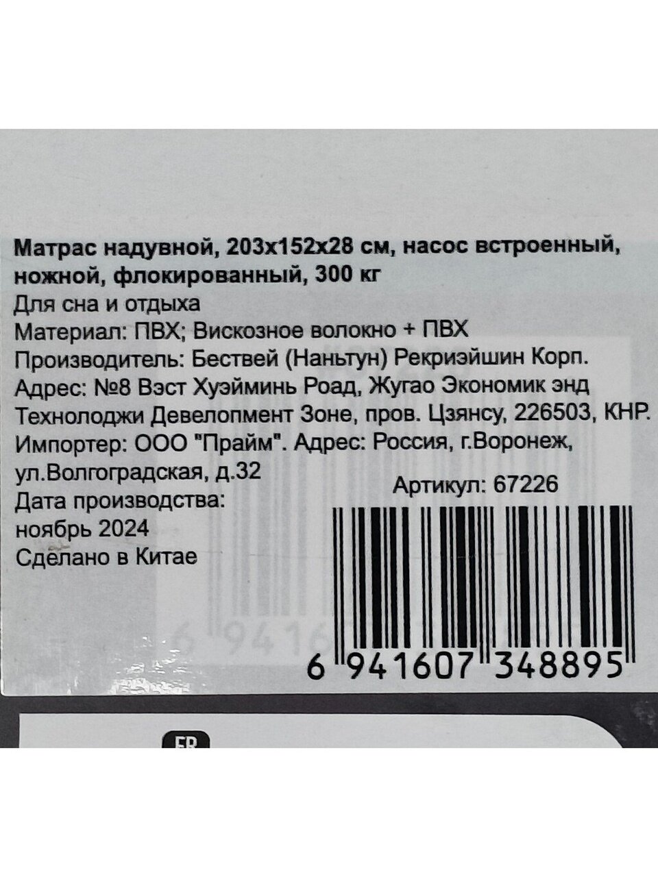 «Матрас надувной Bestway, 203х152х28 см, 332018/67226 BW, насос встроенный, ножной, флокированный, 300 кг» можно купить мелким, средним и крупным оптом по привлекательным ценам благодаря тому, что мы сотрудничаем с российскими и международными производителями напрямую, без посредников.