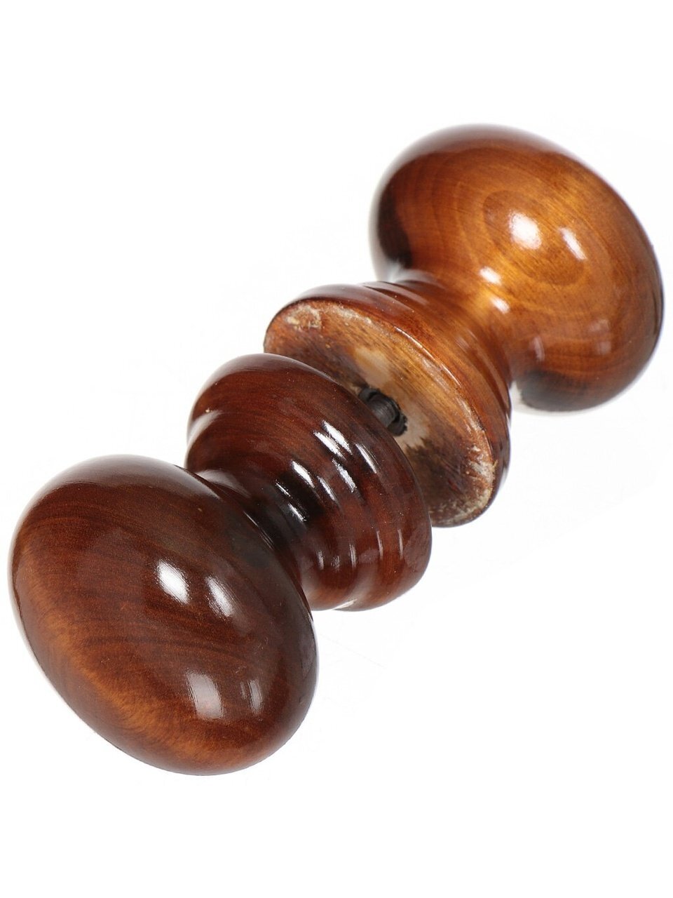 Ручка имеет две половины. Крепится на дверь в сквозное отверстие одним удлиненным винтом. Невероятно удобная и многофункциональная ручка монтируется без лишних хлопот и отличается долголетней службой. Ручка изготовлена из темных твердых сортов дерева и покрыта лаком. Ручка предназначена для дверей любой толщины.