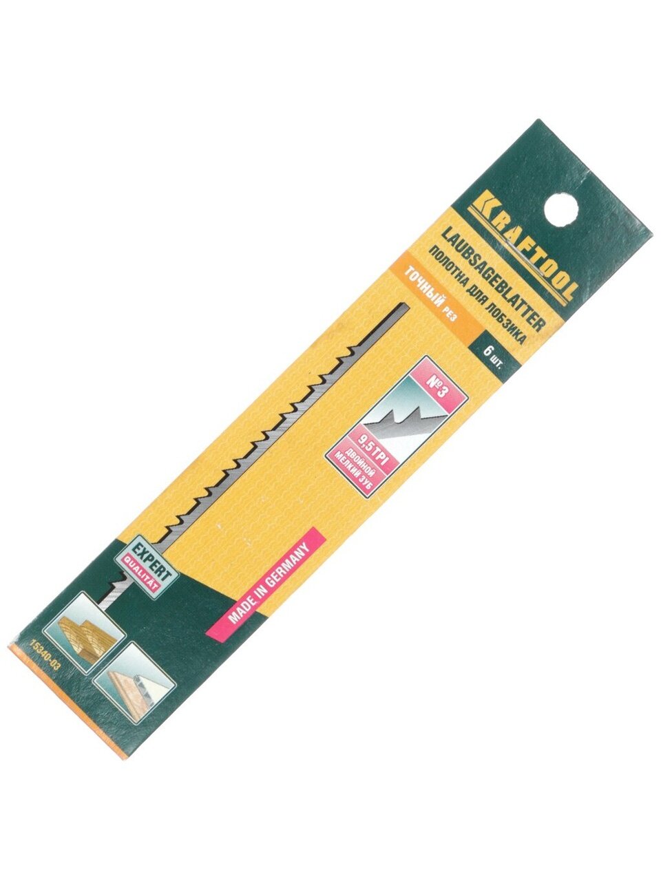 Полотно №3 Kraftool 15340-03 предназначено для резки заготовок из древесины твердых и мягких пород, фанеры и пластика с помощью ручного лобзика. Двойные зубья обеспечивают высокую скорость пиления.