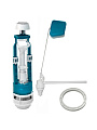 Универсальный сливной клапан СБкпм кнопочный с одним режимом слива (для слива необходимо нажать на кнопку смыва). Предназначен для использования в смывных бачках высотой от 290 до 405 мм и с диаметром отверстия в крышке бачка 40 или 26 мм. Установка клапана в бачках с разными отверстиями в крышке возможна благодаря дополнительному переходному кольцу "кпм", которое расположено под кнопкой и входит в комплект сливного клапана СБкпм.