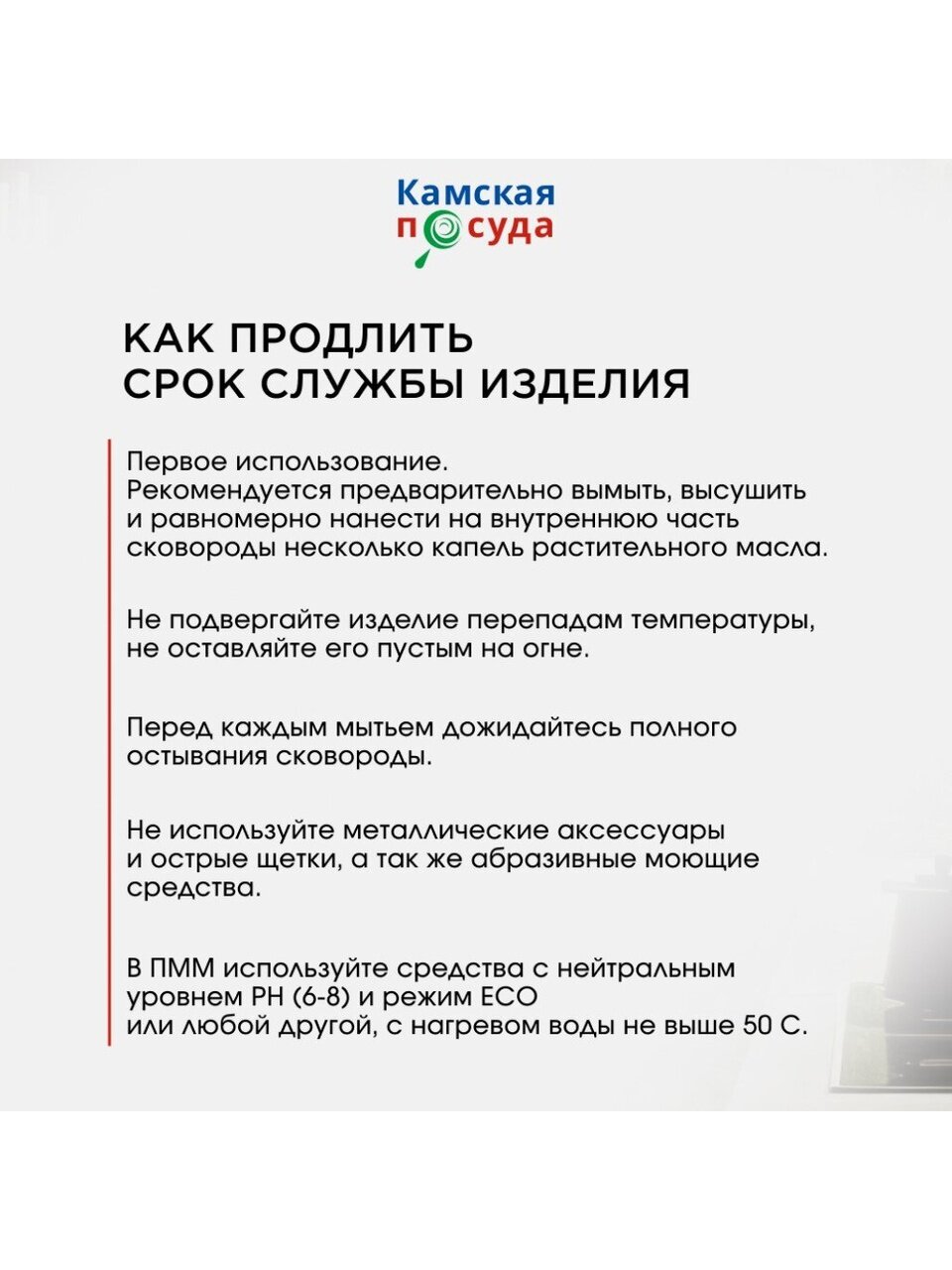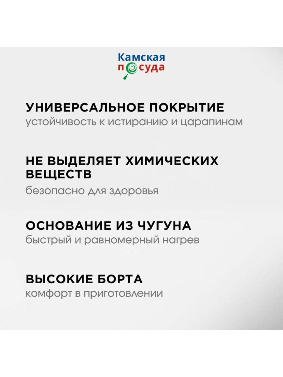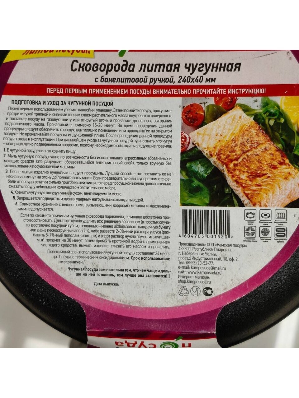 Закажите чугунную сковороду 24 см Камская посуда — выгодная цена, гарантия 12 месяцев, быстрая доставка по России. Готовьте любимые блюда на плите или открытом огне и наслаждайтесь вкусом!