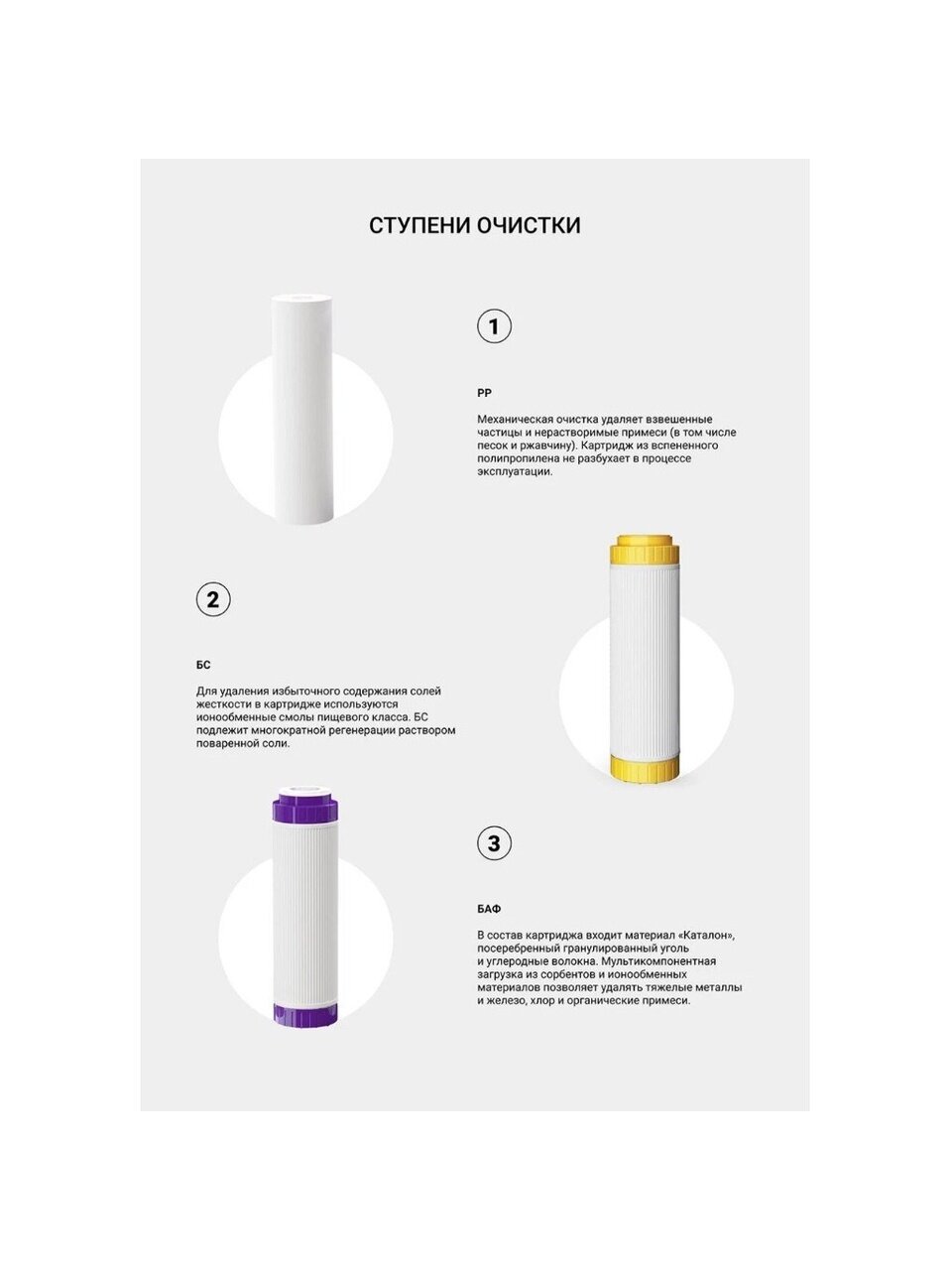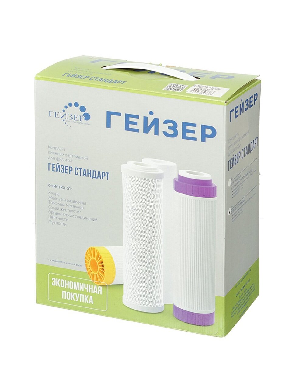 Комплект сменных картриджей Гейзер С-2 для фильтра Гейзер-Стандарт для жесткой воды. Картридж PP 5 - 10SL - удаляет нерастворимые частицы размером до 5 мкм (ржавчина, взвеси). Картридж БС - 10SL - для удаления солей жесткости. Картридж БАФ - SL10 - универсальный картридж для удаления хлора, органических примесей, железа и тяжелых металлов. Содержит серебро. Замена картриджей для семьи из 3-4 человек в среднем 1 раз в год.