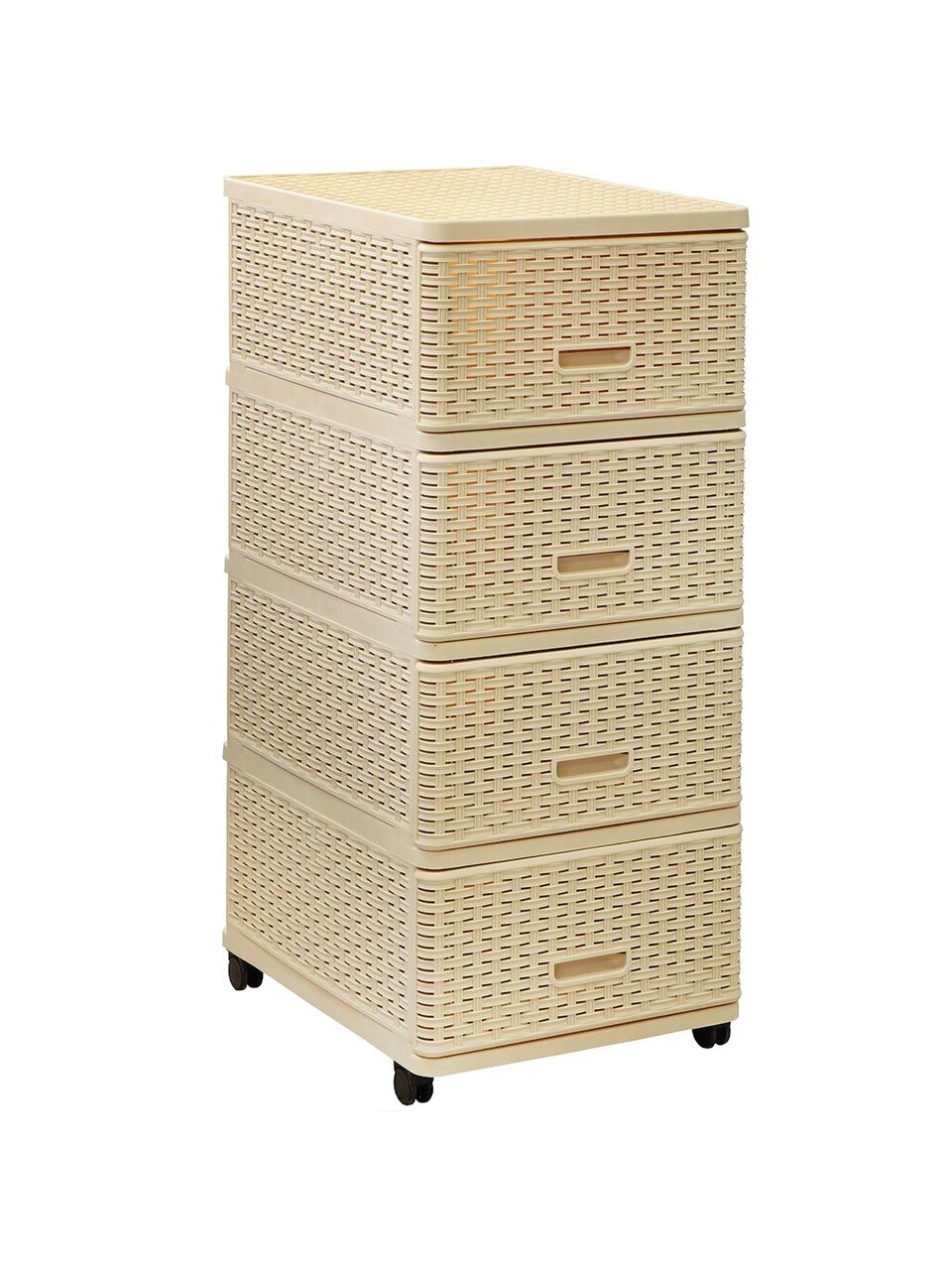 Четырехсекционный комод Dunya практичен и вместителен. Имеет съемные колесики, обеспечивающие легкость передвижения. Комод изготовлен из прочного, экологически чистого пластика. Он легко моется и просто очищается.