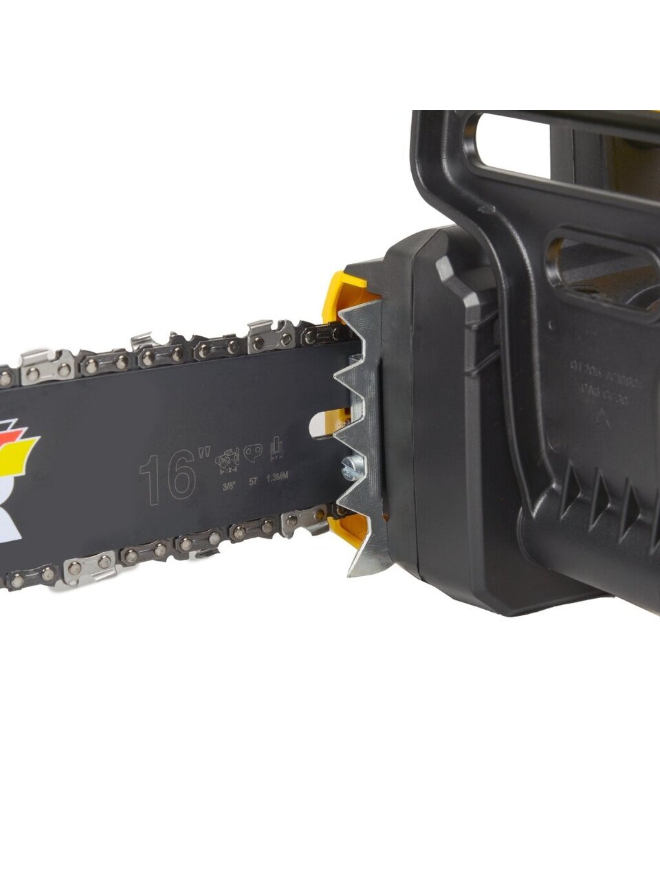 Над шиной находится защитный щиток, который одновременно выполняет функцию ручного тормоза цепи. Данный тормоз помогает избежать травм оператора. Располагающаяся за щитком рукоятка имеет нестандартную форму. Она является округлой и крепится между двух балок, отходящих от основной части корпуса. Покрытие рукоятки сделано из полимерного материала (резины).