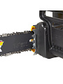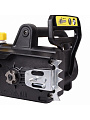 Уровень шума во время эксплуатации также является невысоким и не превышает 64 дБ. Пильная часть электрической пилы представлена 400 мм шиной из металла с логотипом фирмы. На шину одета качественная и прочная пильная цепь из высокопрочного металлического сплава. Скорость пиления составляет 13.6 м/сек. Регулировка натяжения цепи осуществляется с помощью специального винта с правой стороны корпуса.