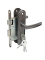 Замок врезной с ручками Зенит-ЗВ4-3.08 предназначен для установки на полотна входных дверей толщиной 40-55 мм. В оснащение замка входит верхняя реверсивная защелка, приводимая в действие фалевой ручкой либо цилиндровым механизмом, и ригель прямоугольной формы, ход которого составляет 22 мм. Во внутреннюю планку встроен дополнительный механизм запирания защелки. Корпус замка изготовлен из стали, ручки классического дизайна произведены из алюминиевого сплава с декоративным финишным покрытием.