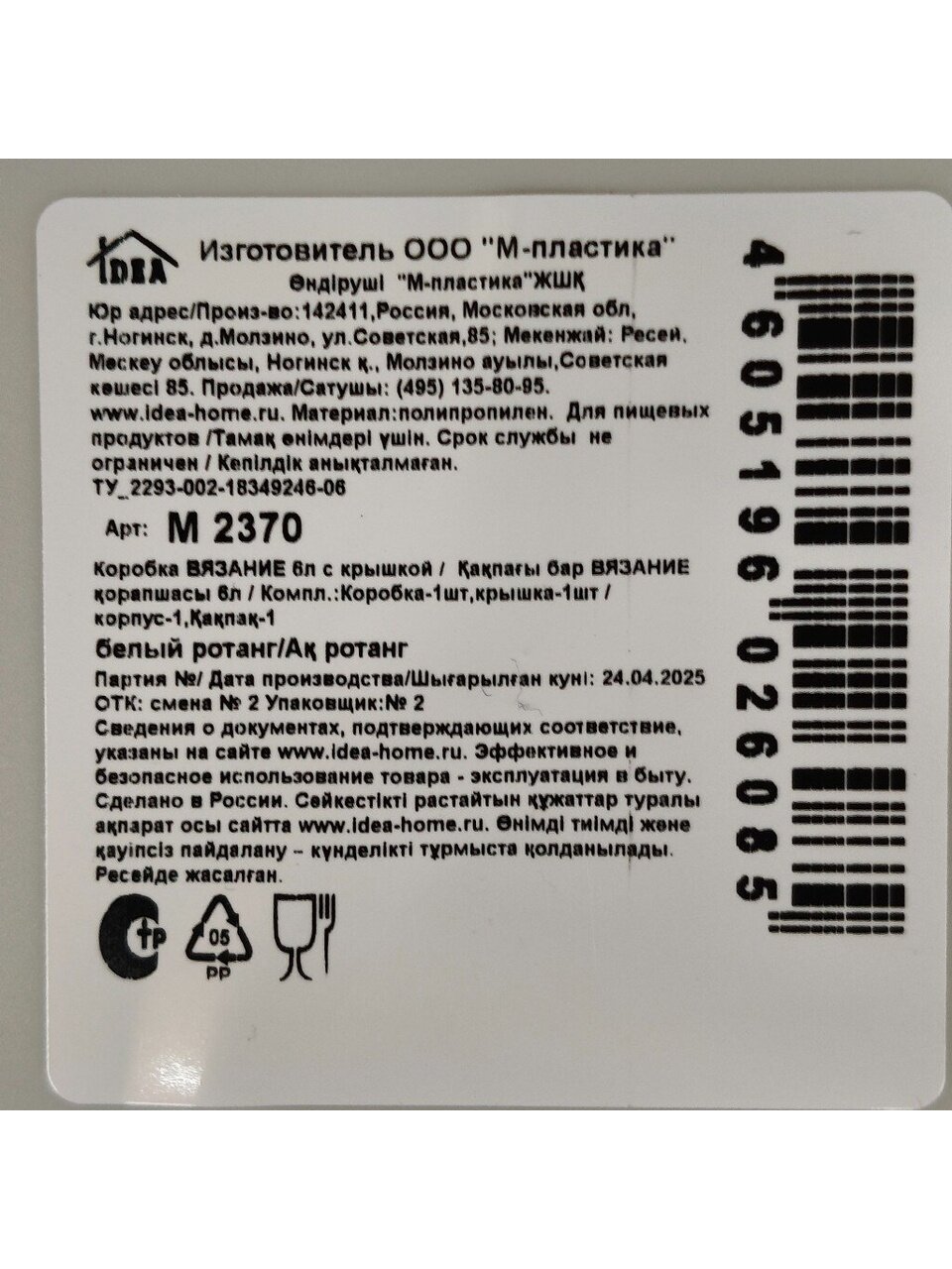Особенности конструкции | плетеный, с ручками, с крышкой |
