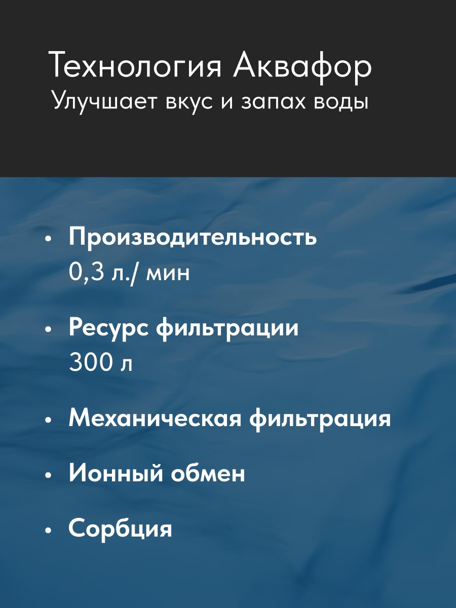 | Ресурс фильтрующего элемента, л | 300 |