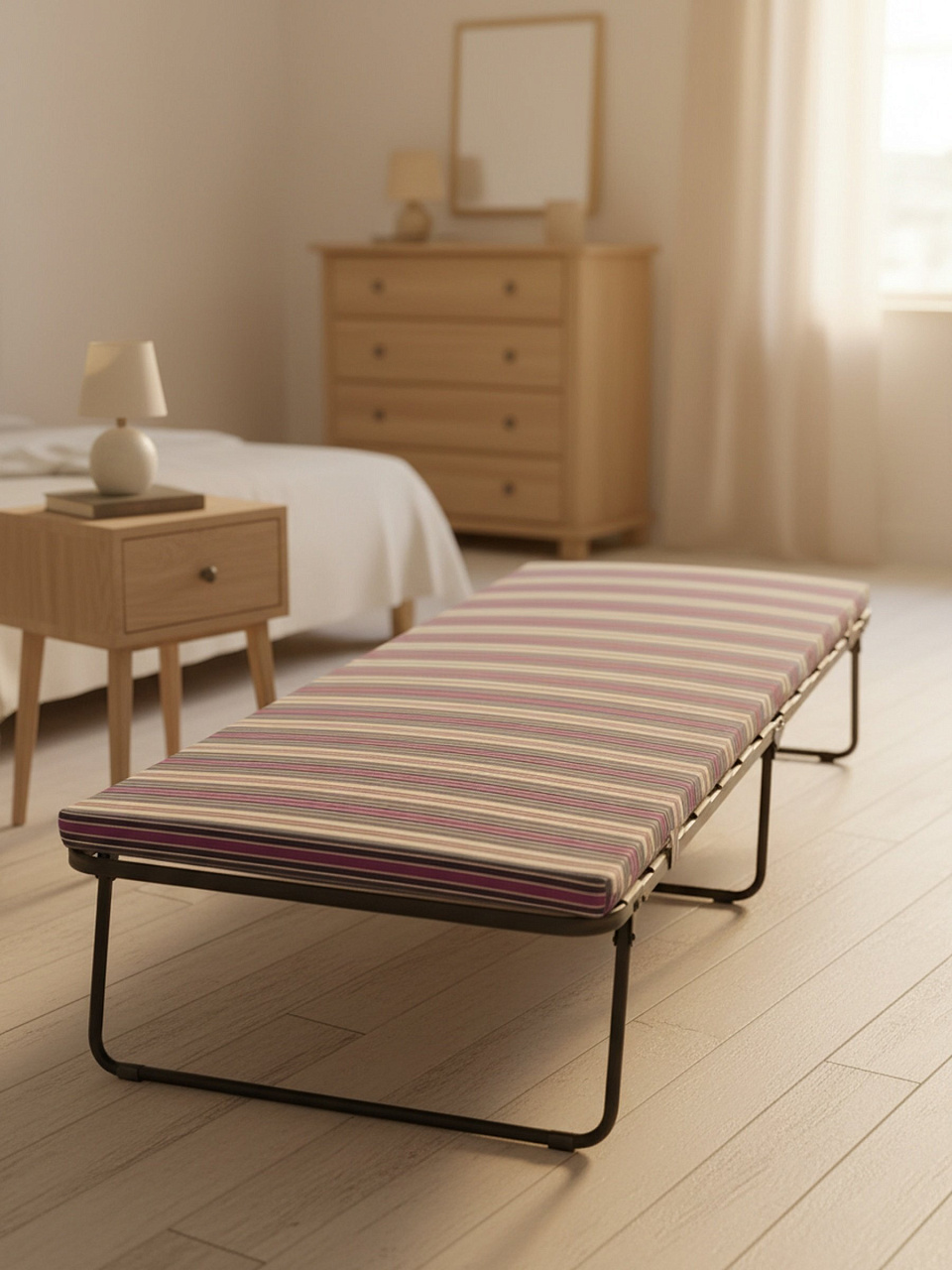 Раскладушка легко складывается и не занимает много места при хранении, что особенно актуально для небольших квартир и дачных домиков. Прочный стальной каркас гарантирует долгий срок службы даже при регулярном использовании. Мягкий матрас из поролона обеспечивает высокий уровень комфорта и способствует полноценному сну. Благодаря универсальному дизайну и практичности, раскладушка Верона станет незаменимым помощником для организации спального места в любых условиях.