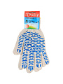 Рабочие перчатки с ПВХ изготовлены из натурального хлопка, а точечки на контактной поверхности из специального полимерного материала. Покрытие из ПВХ позволяет крепко удерживать в руках скользящие материалы, структура покрытия не позволяет предмету вылететь или выскользнуть из руки. Эти перчатки изготавливаются из 100% натуральной хлопковой нити, что позволяет полностью исключить аллергические реакции на искусственные материалы у рабочих, страдающих аллергией.