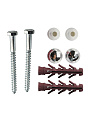 Комплект предназначен для установки унитаза - это простой и надежный способ крепления сантехники. Крепление производится в два шага: сначала в предварительно просверленное отверстие устанавливается дюбель как промежуточное звено, затем осуществляется сам крепеж.