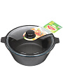 Объем — 4 литра, диаметр по верху — 28 см, диаметр дна — 18,5 см, высота без крышки — 11,5 см, с крышкой — 16 см. Кастрюля оснащена двумя ручками и стеклянной крышкой в комплекте.
