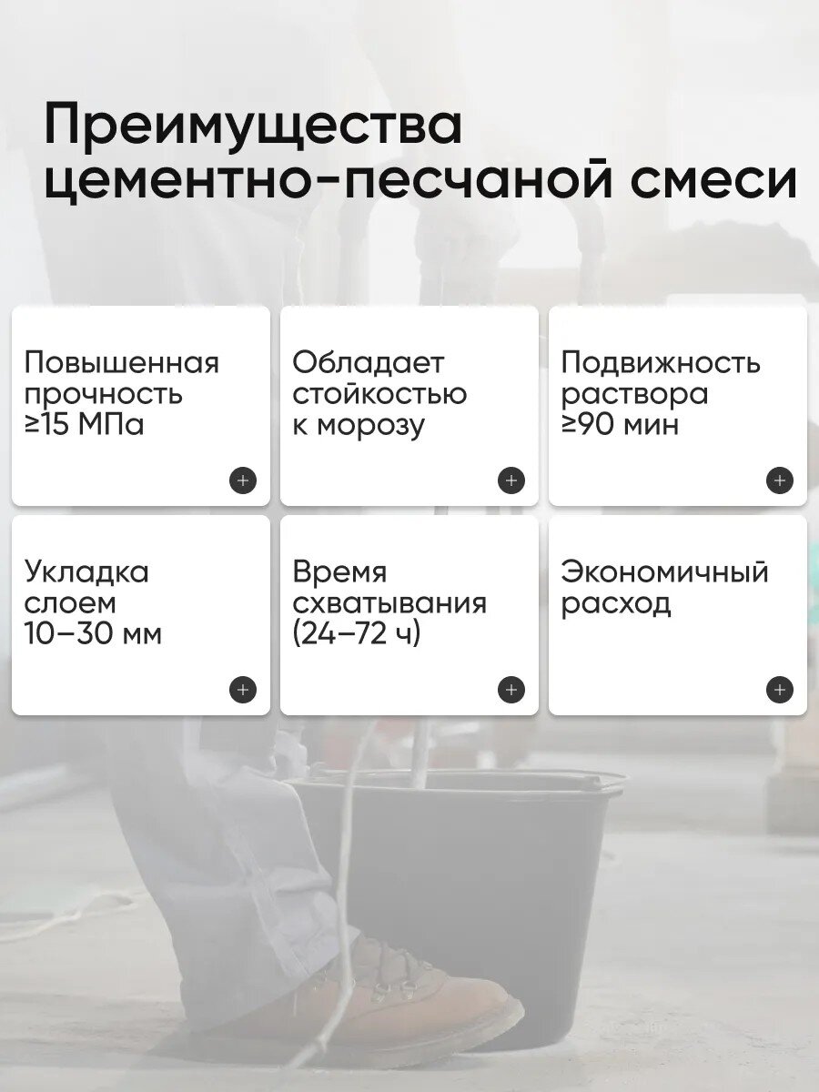 Цементно-песчаная смесь Старатели М300 — идеальный выбор для строительных и ремонтных работ! Высокое качество и надежность делают эту смесь незаменимой для профессионалов и любителей. Отлично подходит для создания прочных конструкций, заливки полов, устроства стяжек, заливки фундаментов и отмосток, кладочных работ. Используется в помещении с нормальной и повышенной влажностью (в том числе неотапливаемых), а также для наружных работ.