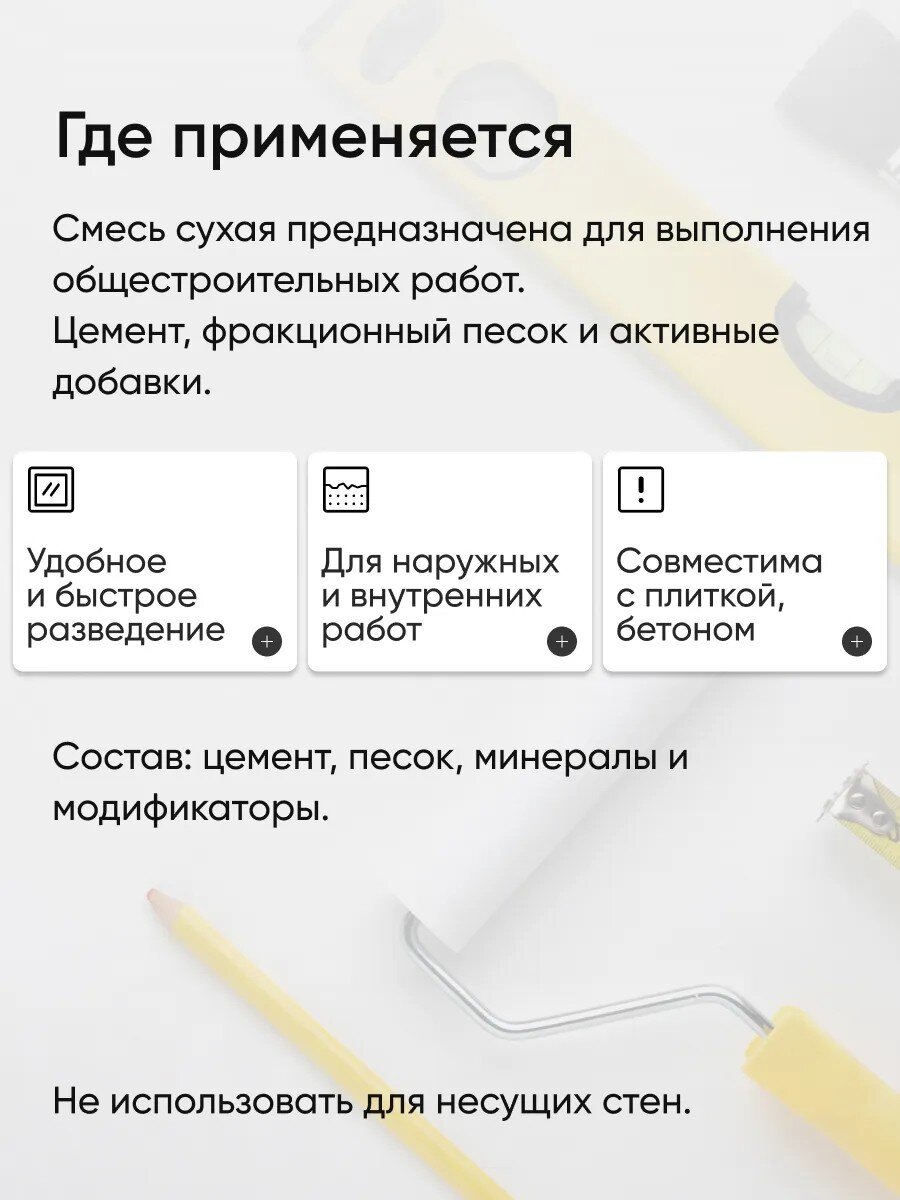 Состав: сухая смесь из портландцемента и фракционного сухого песка.
