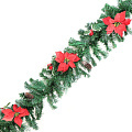 Великолепное декоративное украшение - хвойная гирлянда - составлена из веточек с искусственной хвоей. Гирлянда декорирована заснеженными шишками, ярко красными ягодами и цветами пуансеттии. Очень нарядная гирлянда удовлетворит самый взыскательный вкус и будет гармонично смотреться в любом интерьере, придавая ему праздничное новогоднее настроение.