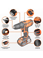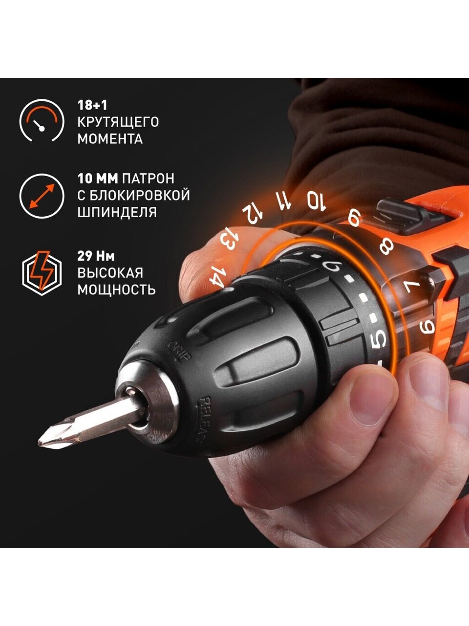 Аккумуляторная дрель-шуруповерт PATRIOT THE ONE BR 181Li разрушает стереотип о том, что бытовой инструмент не обладает высокой работоспособностью. Инструмент справляется со сверлением дерева, металла, плитки и пластмассы. Максимальный крутящий момент 29 Нм поддерживается до полной разрядки батареи. В распоряжении пользователя 2 скорости, 18 степеней регулировки и функция реверса. Подходящий вариант для монтажных и ремонтных работ! Рукоятка ExtraGrip имеет прорезиненные вставки для комфортного удержания инструмента. Через вентиляционные отверстия поступает достаточно воздуха, что охлаждает двигатель и предохраняет его от перегрева. Для простоты транспортировки и хранения инструмента в комплект поставки входит кейс.