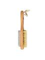 Деревянная двусторонняя щетка с пемзой предназначена для очищения и массажа кожи, ног и спины, другие – ягодиц и бедер (это щетки с так называемым антицеллюлитным эффектом). Использование щетки должным образом улучшает циркуляцию крови, поэтому иметь такой аксессуар в бане, сауне и дома просто необходимо.