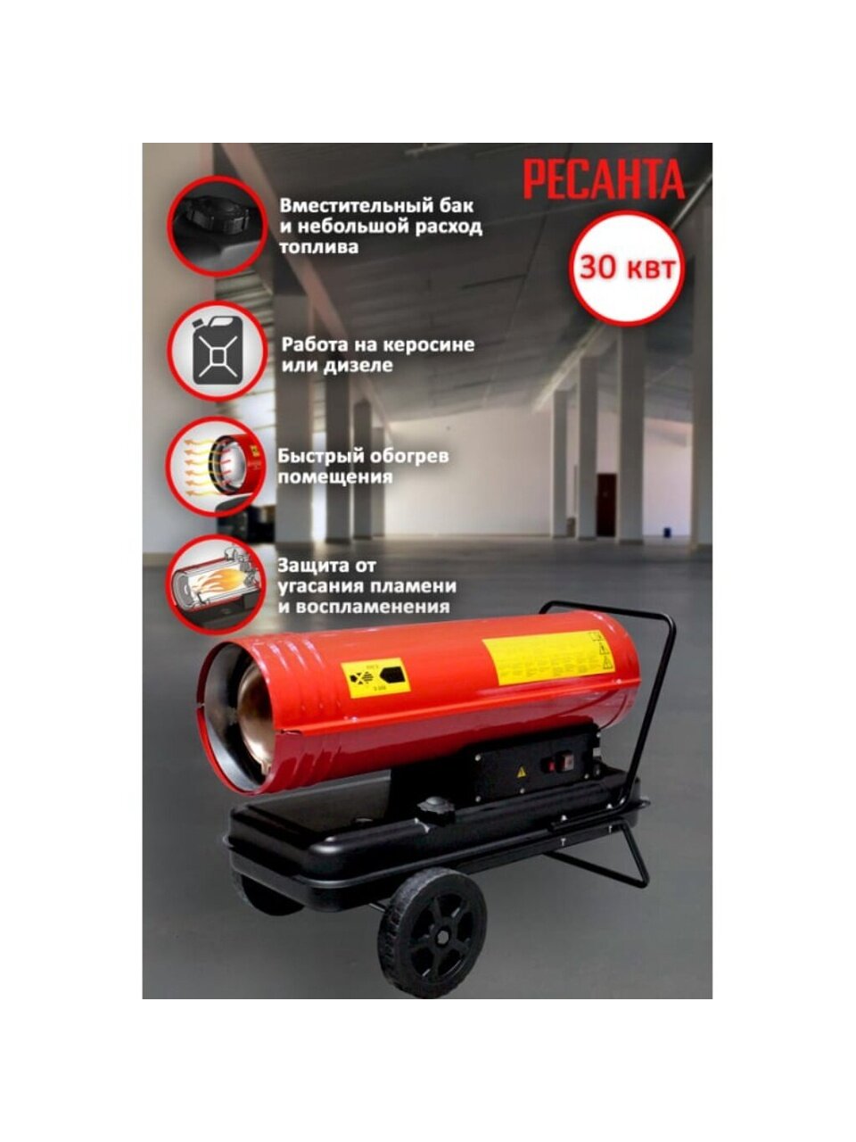 Дизельная тепловая пушка Ресанта – это отопительный агрегат, основное предназначение которого заключается в быстром и экономичном обогреве таких нежилых помещений, как производственные цеха, сельскохозяйственные хранилища, строительные площадки и прочее.