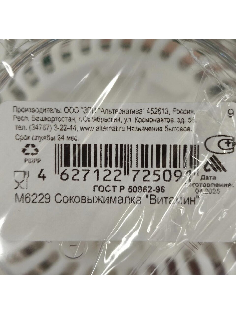 Соковыжималка Витамин позволяет вручную получить сок из цитрусовых фруктов: апельсина, лимона, грейпфрута. Работать на ней быстро, а мыть после использования легко. На ёмкости для удобства расположена мерная шкала. Кувшин с крышкой можно использовать отдельно без выжимающей насадки. Изделие изготавливается из безопасного материала, химически нейтрального и разрешенного для контакта с пищевыми продуктами.