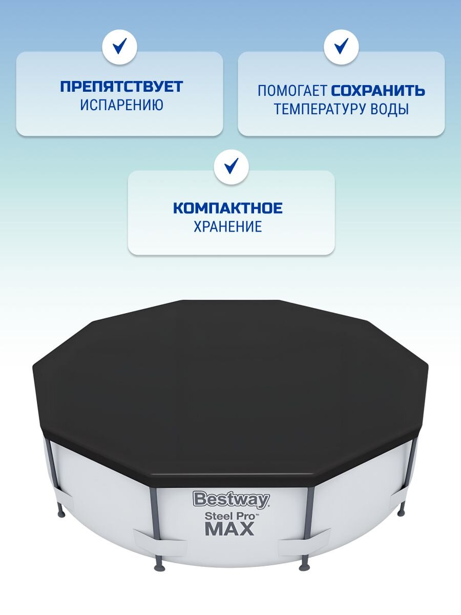 Подходит для бассейнов диаметром 305 см (диаметр тента 335 см).