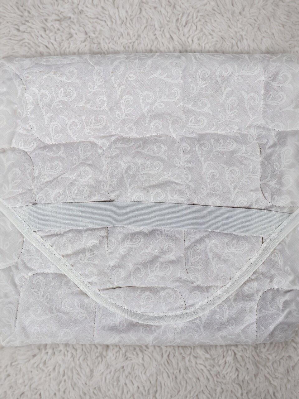 С помошью резинки намотрасник крепится к матрасу, надежно фиксируя.