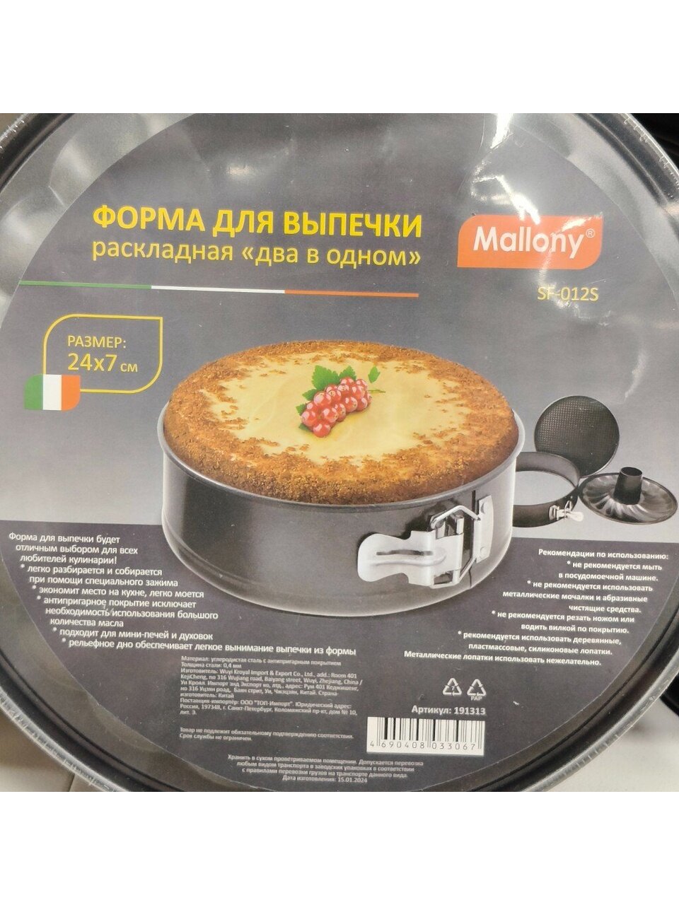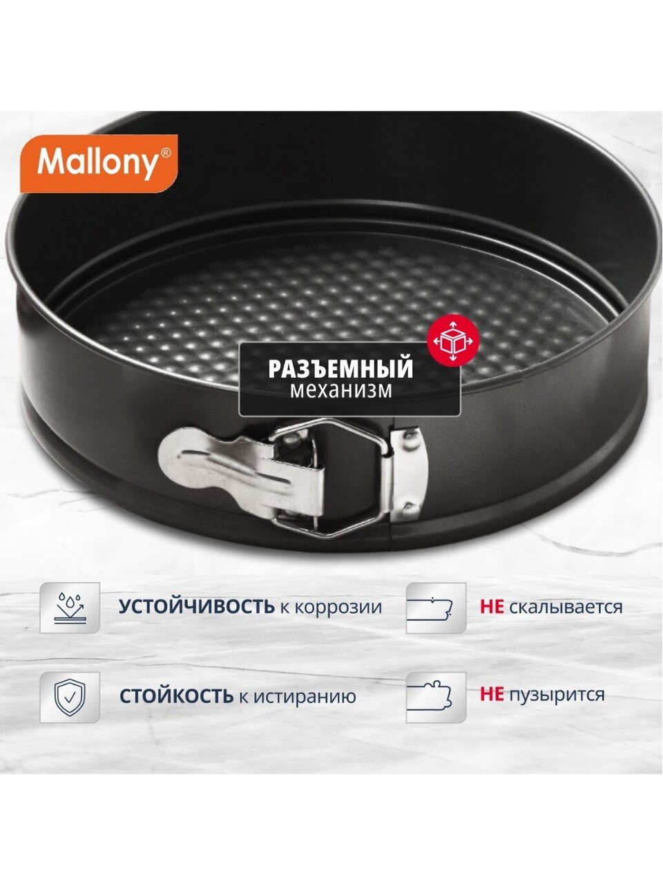 Форма для запекания Mallony — это универсальный выбор для тех, кто ищет, какую форму для выпечки купить недорого для дачи или дома. Благодаря антипригарному покрытию и разъемной конструкции вы легко извлечете готовый пирог или торт, не повредив его. Стальная основа гарантирует равномерное пропекание, а рифленое дно придает выпечке привлекательный вид.