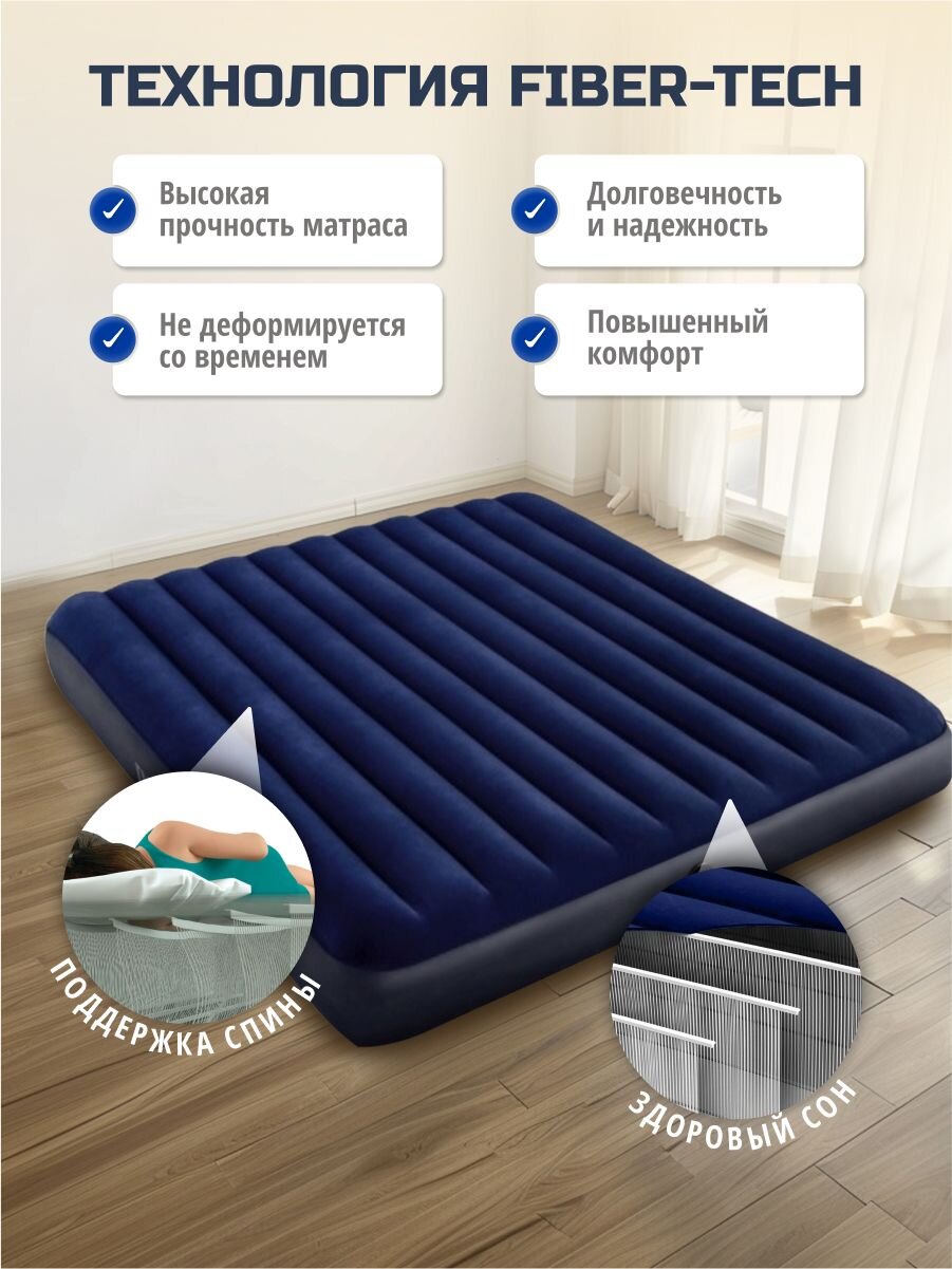 Вместо традиционных перегородок из ПВХ, Intex использует большое количество высокопрочных волокон, что предотвращает их растяжение и деформацию в процессе использования. Благодаря этому, матрас не проминается и не продавливается, обеспечивая здоровый и комфортный сон.
