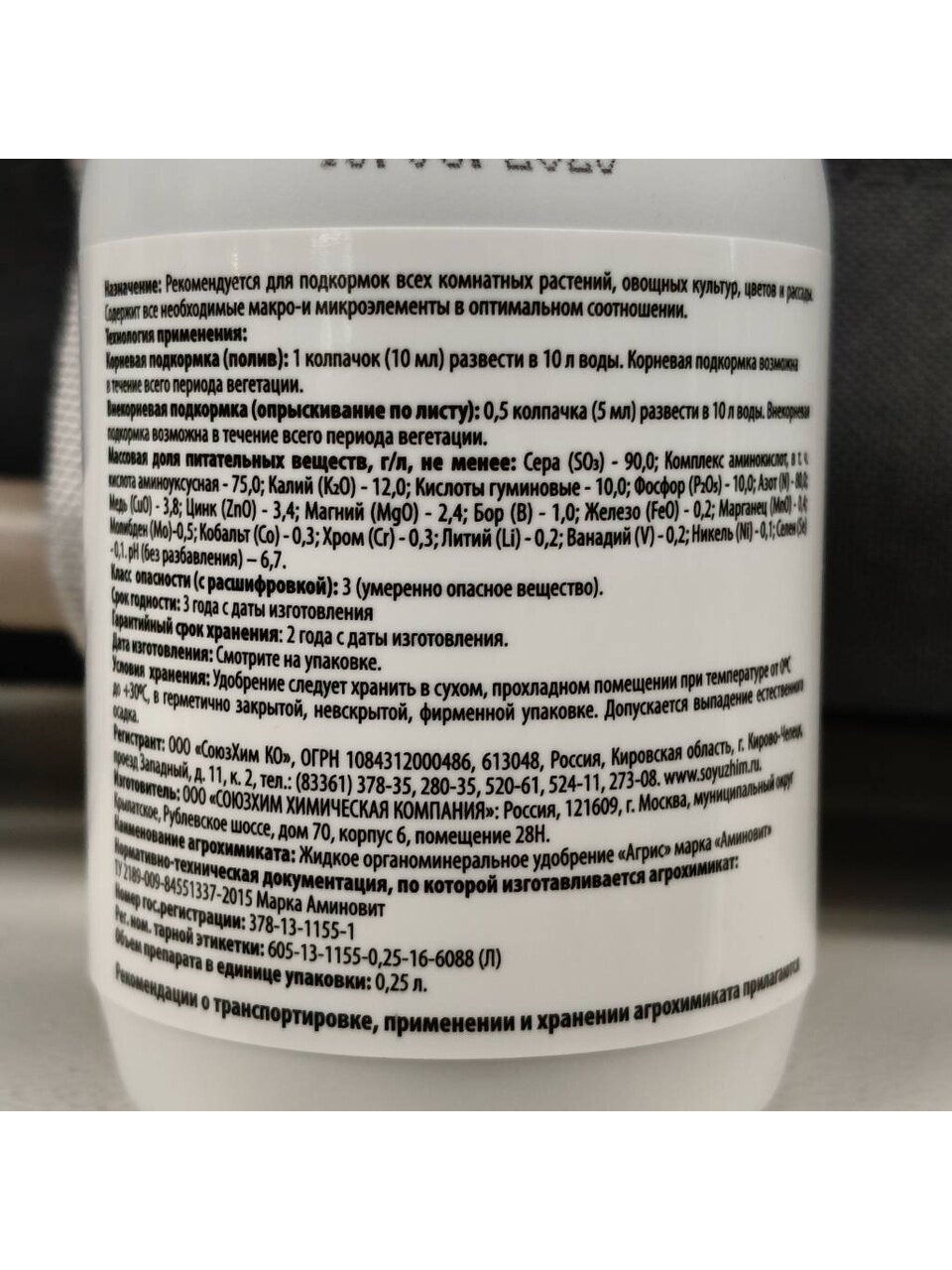 Аминовит содержит 90г/л серы и должен использоваться не только как дополнение к сухому NPK питанию, но и как дополнение к питанию растения серой.