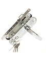 Врезной замок с ручками и цилиндровым механизмом 70 мм (готовый комплект). Межосевое расстояние 85 мм. По посадочным размерам совпадает с замками китайского производства с аналогичным межосевым расстоянием. Декоративное покрытие замка и цилиндра - Никель. 5 ключей в комплекте. Упаковка - картонная коробка. Подходит для левых и правых дверей.
