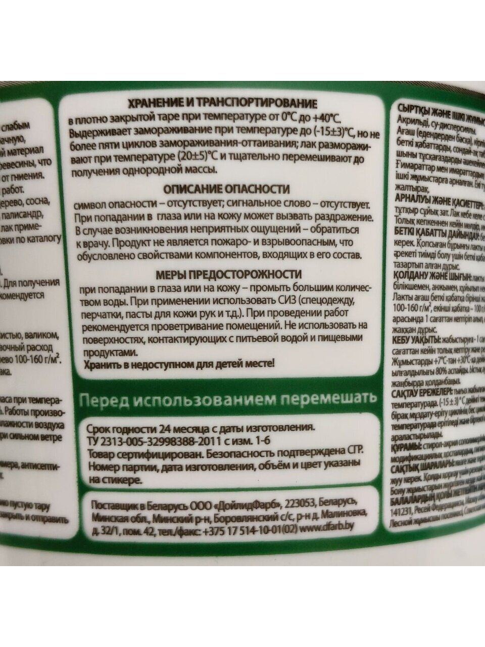 Лак акриловый пропиточный с антисептиком представляет собой гомогенную вязкую жидкость со слабым запахом.