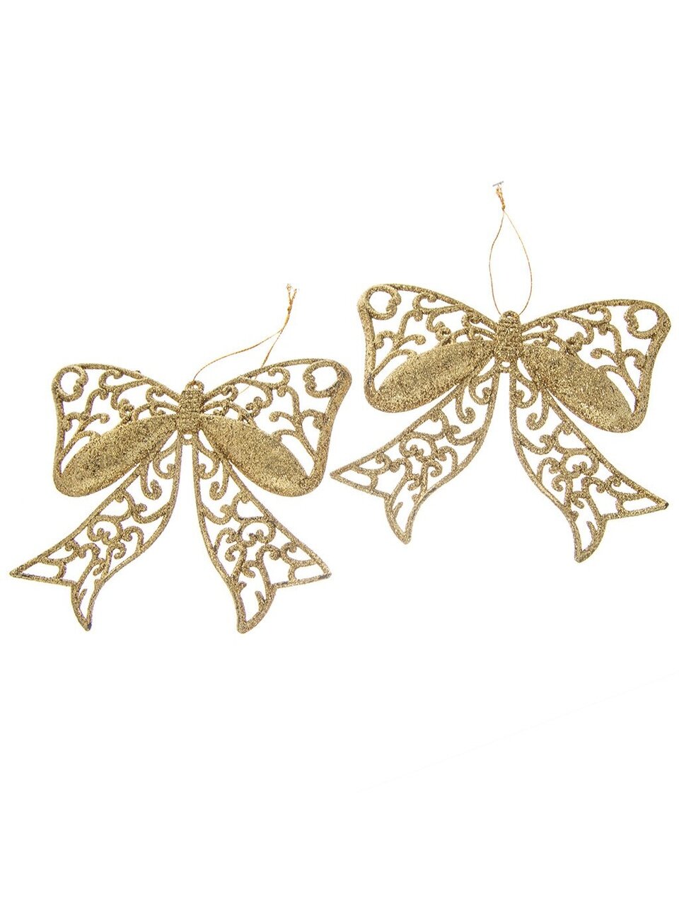 Эффектные золотые банты для ёлки — набор из 2 украшений 11×9,5 см: стильный декор для дома, дачи и подарка, который не бьётся и легко крепится