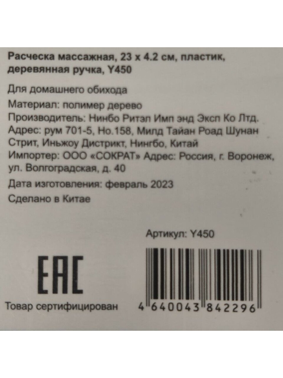 «Расческа массажная, 23 х 4.2 см, пластик, деревянная ручка, Y450» можно купить мелким, средним и крупным оптом по привлекательным ценам благодаря тому, что мы сотрудничаем с российскими и международными производителями напрямую, без посредников.
