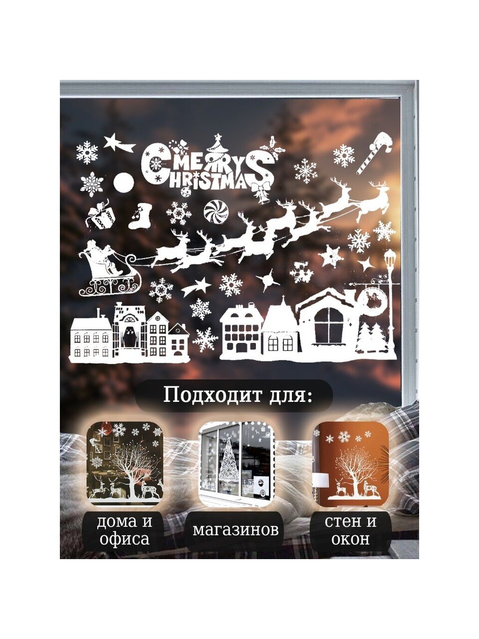 Прозрачные оконные стекла и зеркала в доме – бесконечный плацдарм для творчества! Почему бы не воспользоваться этим фактом? Новогодние наклейки помогут вам украсить интерьер дома к предстоящим праздникам и почувствовать волшебную атмосферу Нового года. Наклейте украшения на стекла и наслаждайтесь прекрасным видом из окна. Создать праздничную атмосферу в доме теперь стало еще проще!