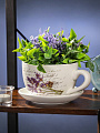 Креативный горшок из керамики выполнен в виде чашки с блюдцем. Оригинальная форма и высокая функциональность рождают интересное сочетание, которое понравится поклонникам нестандартных решений и практичности одновременно. А вместительный поддон поможет не беспокоиться о вылившейся на подоконник грязной воде.