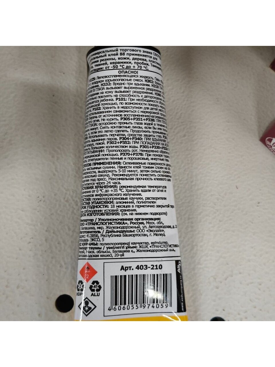 Клей универсальный особопрочный применяется для склеивания резины, кожи, дерева, пластиков, картона, ткани, керамики, пробки и прочих устойчивых к растворителям материалов, образуя при этом клеевой шов, устойчивый к морской и пресной воде, не вызывающий коррозии стали и алюминиевых сплавов и сохраняющий свои свойства в широком диапазоне температур от -50 °С до +70 °С.
