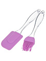 Набор для выпечки из кисточки и лопатки из силикона с пластиковыми ручками предназначен для подготовки теста к выпечке. Силиконовое покрытие не царапает посуду, не впитывает запахи и жир, легко моется и безопасно для посуды с антипригарным покрытием. Лопаткой можно безопасно перемешивать продукты в горячей сковороде - силикон выдерживает высокие температуры. Ручки выполнены из пластика, а форма удобно ложится в руку.