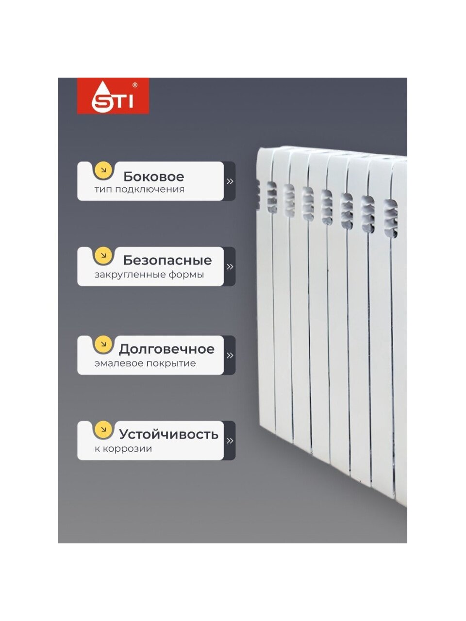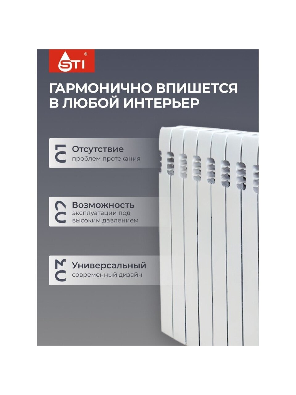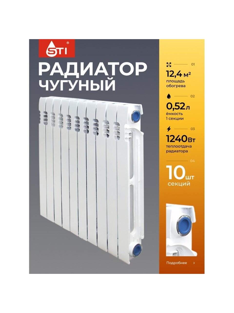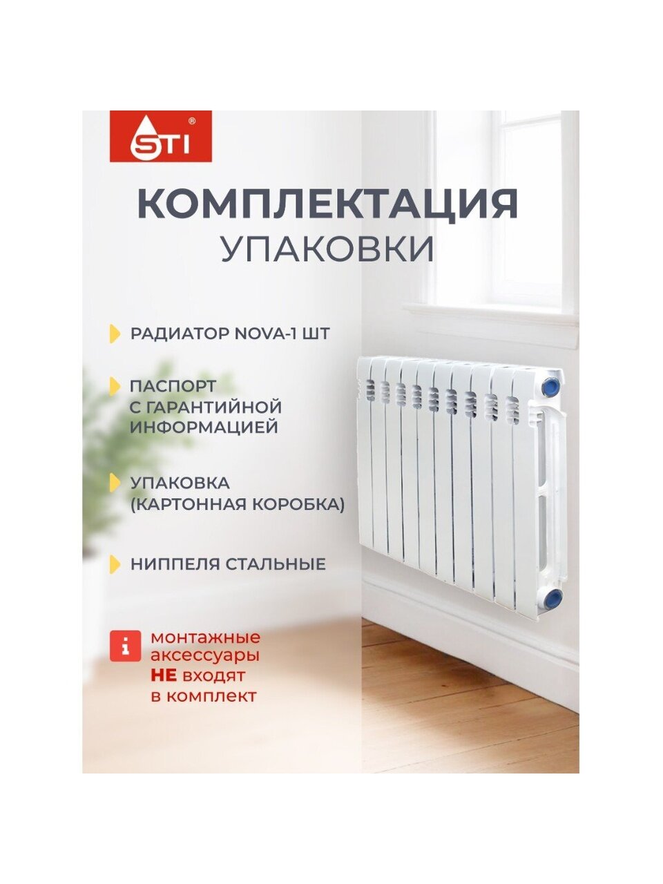 Чугунные секционные радиаторы отопления STI Nova предназначены для применения в системах водяного отопления жилых, административных и общественных зданий (в том числе высотных). Радиаторы STI Nova сертифицированы в системе ГОСТ Р и соответствуют ГОСТ 31311-2005. Конструкция модели Nova представляет собой собранные вместе секции из высококачественного литейного чугуна. Наружная поверхность радиатора покрыта защитным эмалевым покрытием.
