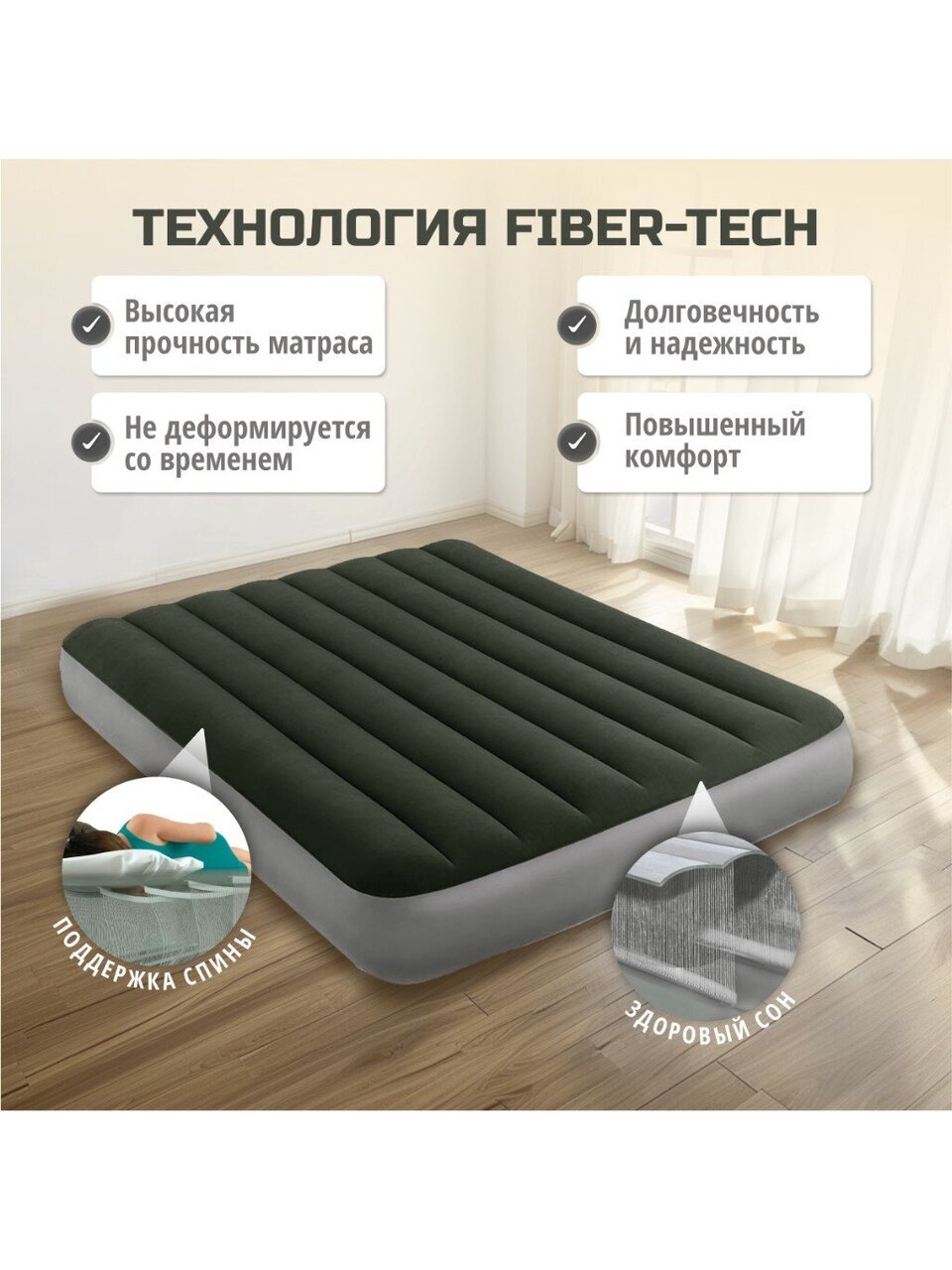 Вместо традиционных перегородок из ПВХ, Intex использует большое количество высокопрочных волокон, что предотвращает их растяжение и деформацию в процессе использования. Благодаря этому, матрас не проминается и не продавливается, обеспечивая здоровый и комфортный сон.