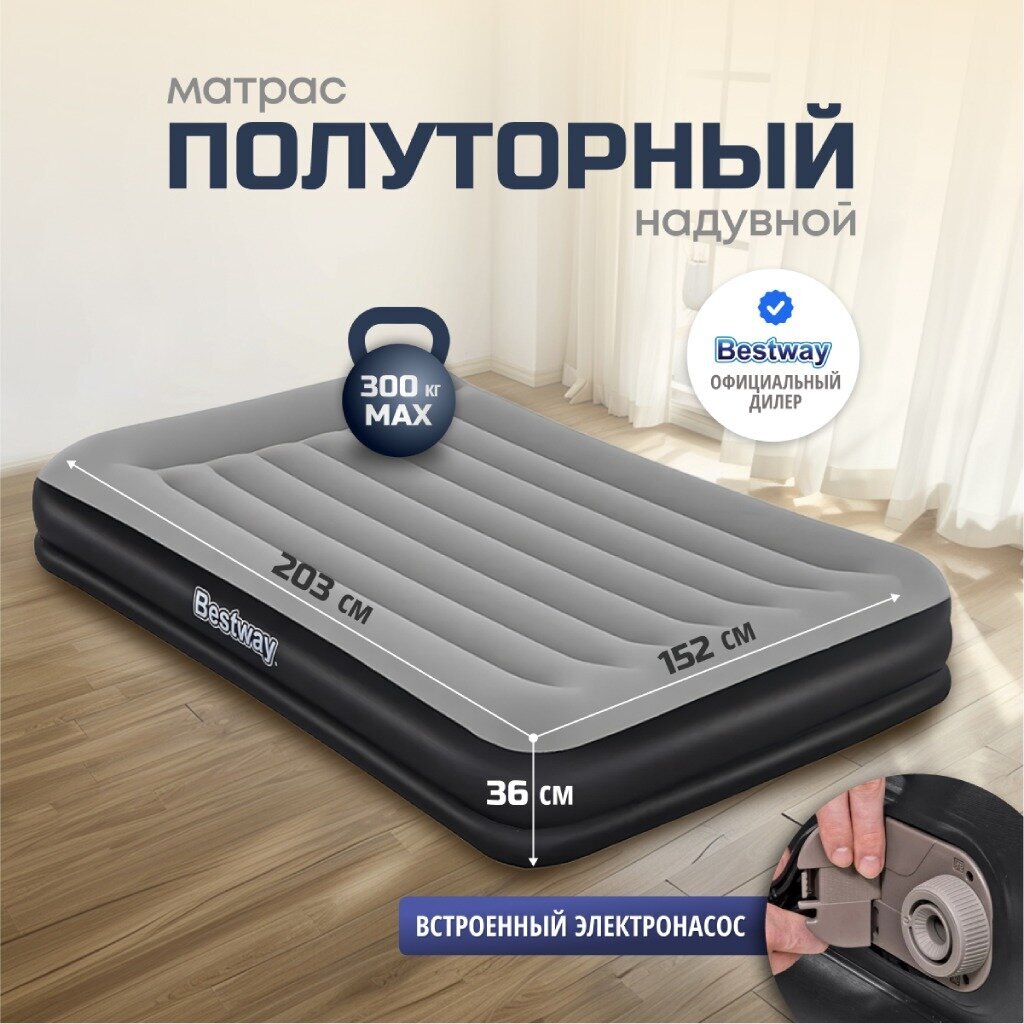Надувной матрас Bestway обеспечивает комфортный и здоровый сон в любой ситуации. Изготовленный из прочного флокированного винила, он имеет особую конструкцию, которая сохраняет свою форму даже при неравномерной нагрузке.
