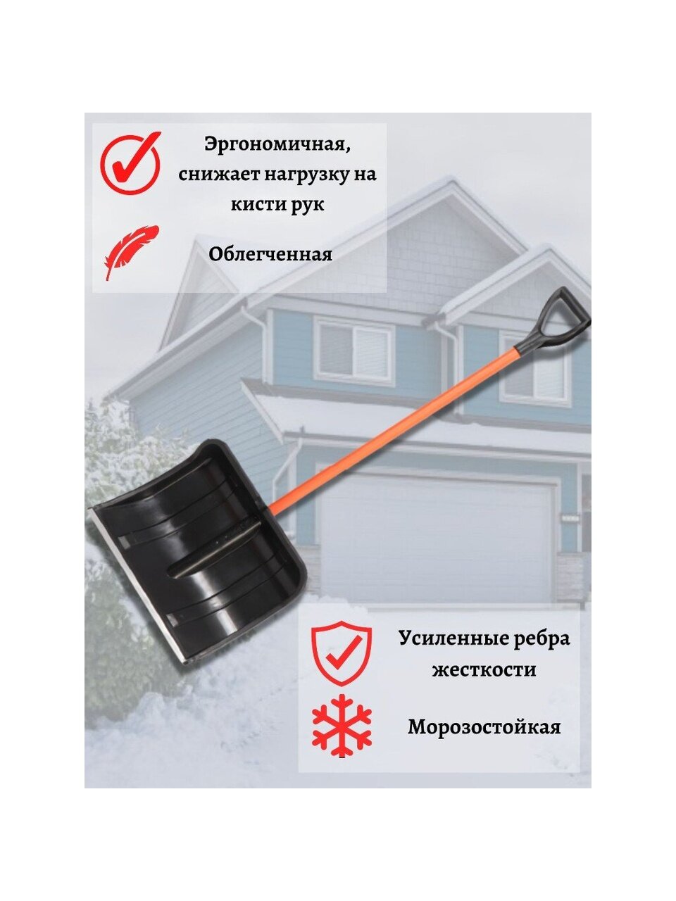 Лопата для снега с алюминиевой планкой 500х375 мм — усиленная модель для быстрой уборки снега у дома и на даче, срок службы до 5 сезонов.
