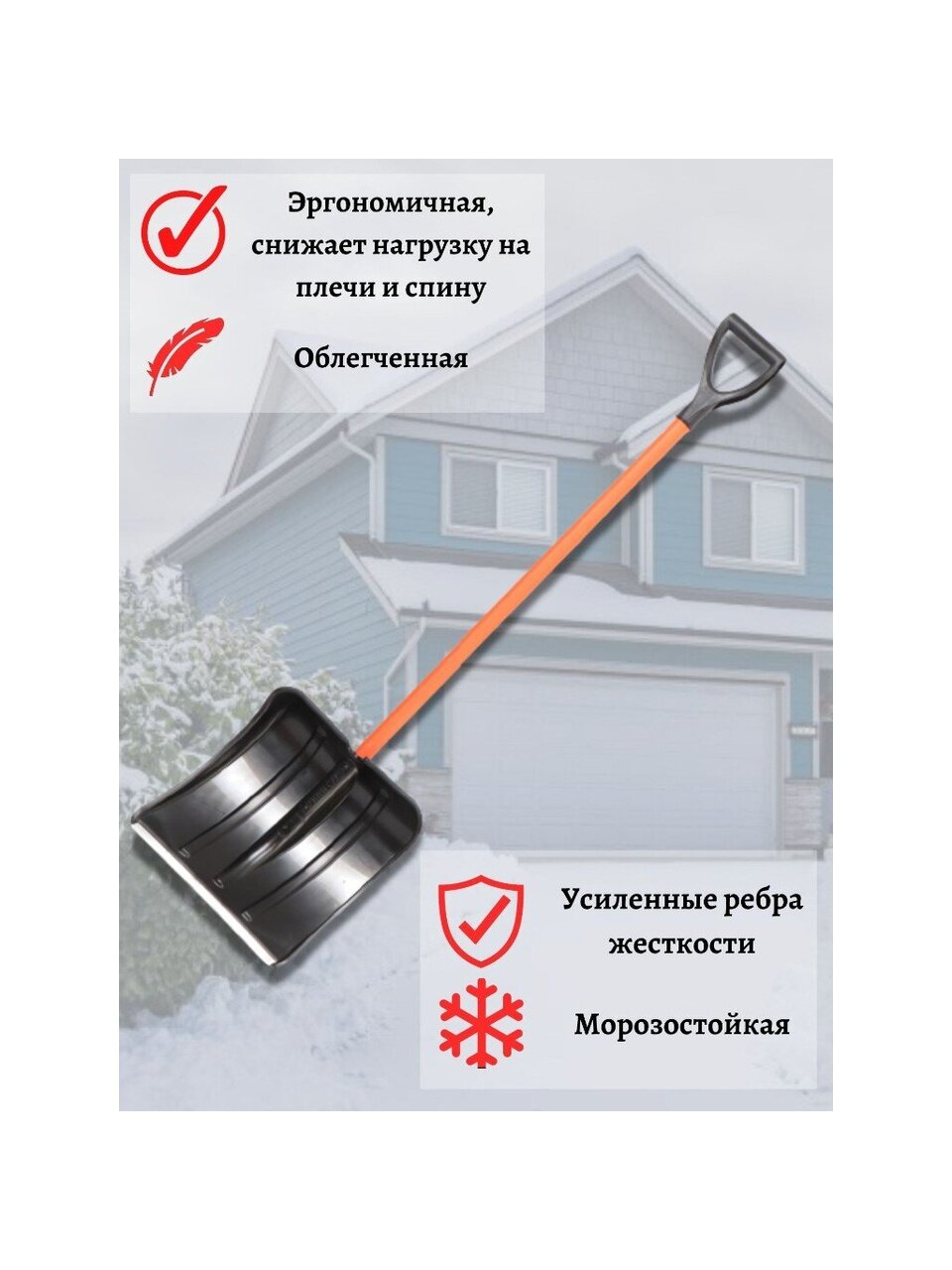 Если вы ищете, что лучше для уборки снега во дворе, обратите внимание на эту модель: она не уступает аналогам по прочности, но легче и удобнее в использовании. Закруглённая форма ковша помогает легко подцеплять и сдвигать даже мокрый или слежавшийся снег. Лопата не разборная, что исключает люфты и поломки при сильных нагрузках. Часто спрашивают, подходит ли она для городских условий — да, благодаря небольшому весу (1,14 кг) и компактным размерам её удобно хранить и перевозить.