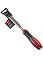 Стержень изготовлен из хромванадиевой стали (CrV). Усиленная рукоятка изготовлена из двухкомпонентного пластика, не скользит в руках. Инструмент подходит для продолжительной работы при высоких нагрузках, долговечен, надёжен, удобен и прост в эксплуатации.