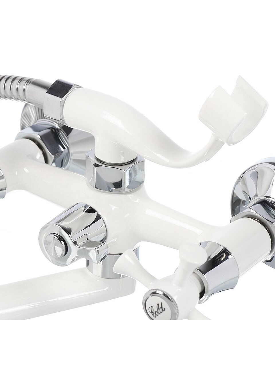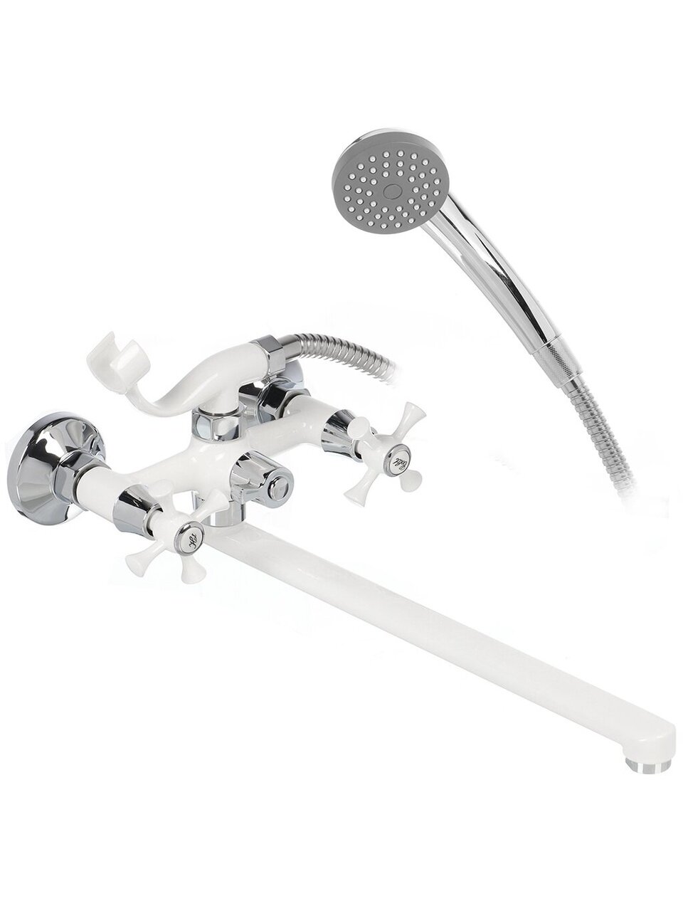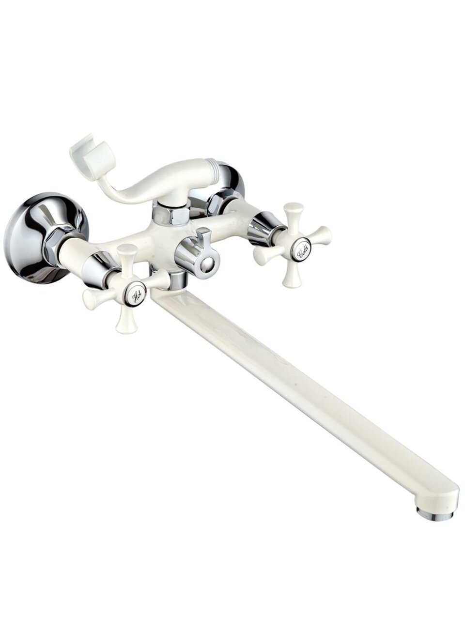 Смеситель для ванны Эверест B23-0647 — белый дизайн, керамическая кран-букса, длинный излив 35 см. Надёжное решение для ванной, дома и дачи.