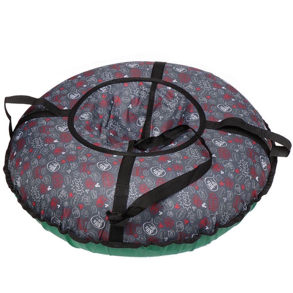 Применение специально разработанных материалов позволяет санкам приобретать повышенную прочность и надежность. Камера в верхней части защищена тканью, а снизу ПВХ материалом. Для катающегося предусмотрены две ручки из текстильных ремней. Ватрушка тюбинг в сдутом виде очень компактна.