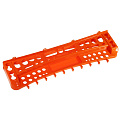 Имеет большое количество отверстий разного размера, двойных отверстий, небольшую полку для хранения мелких предметов, крючки для подвеса.