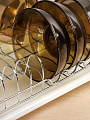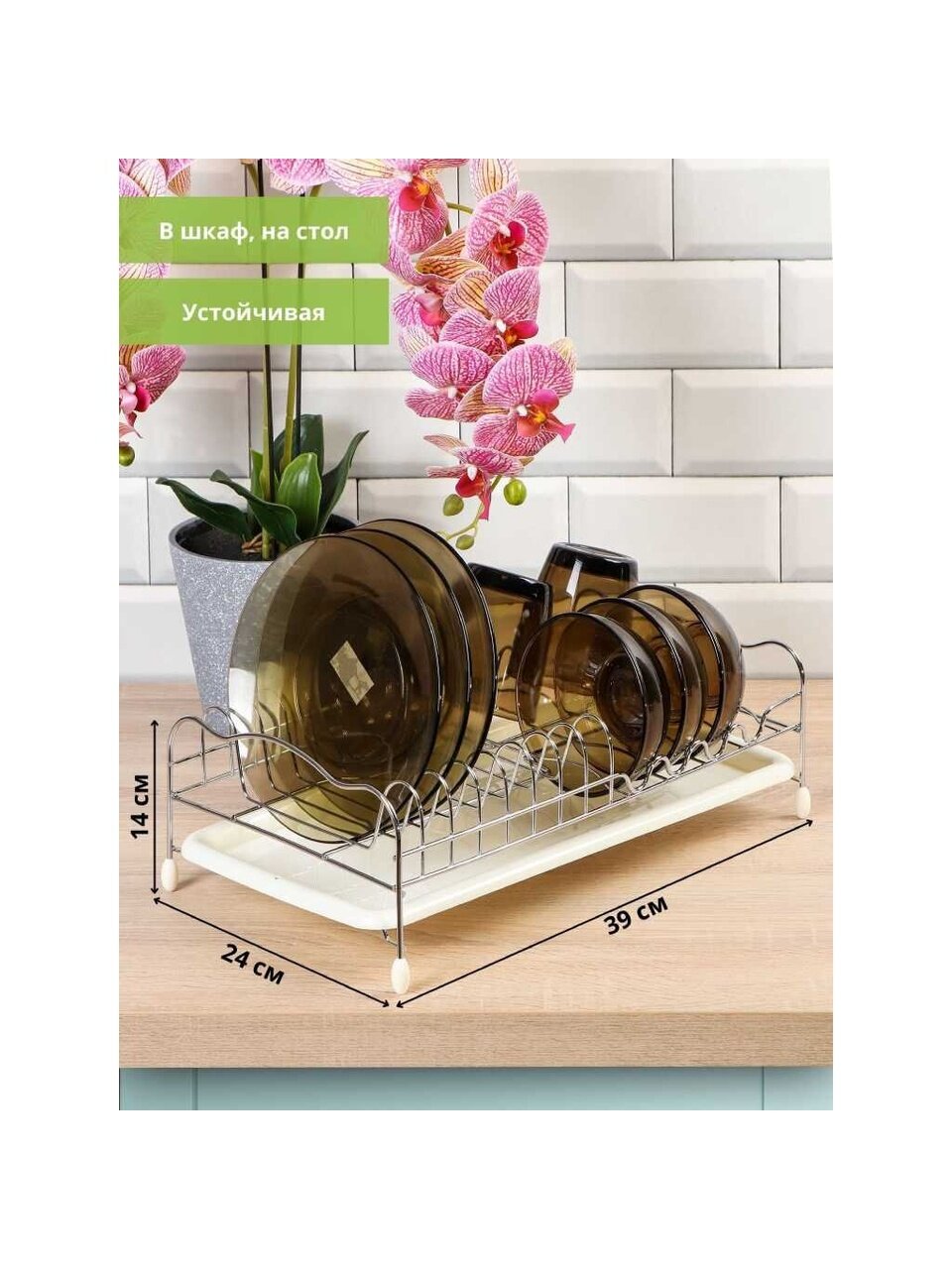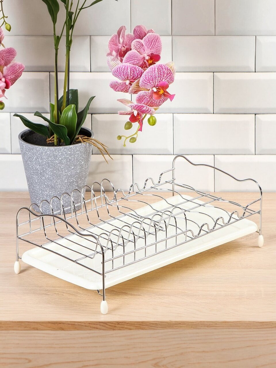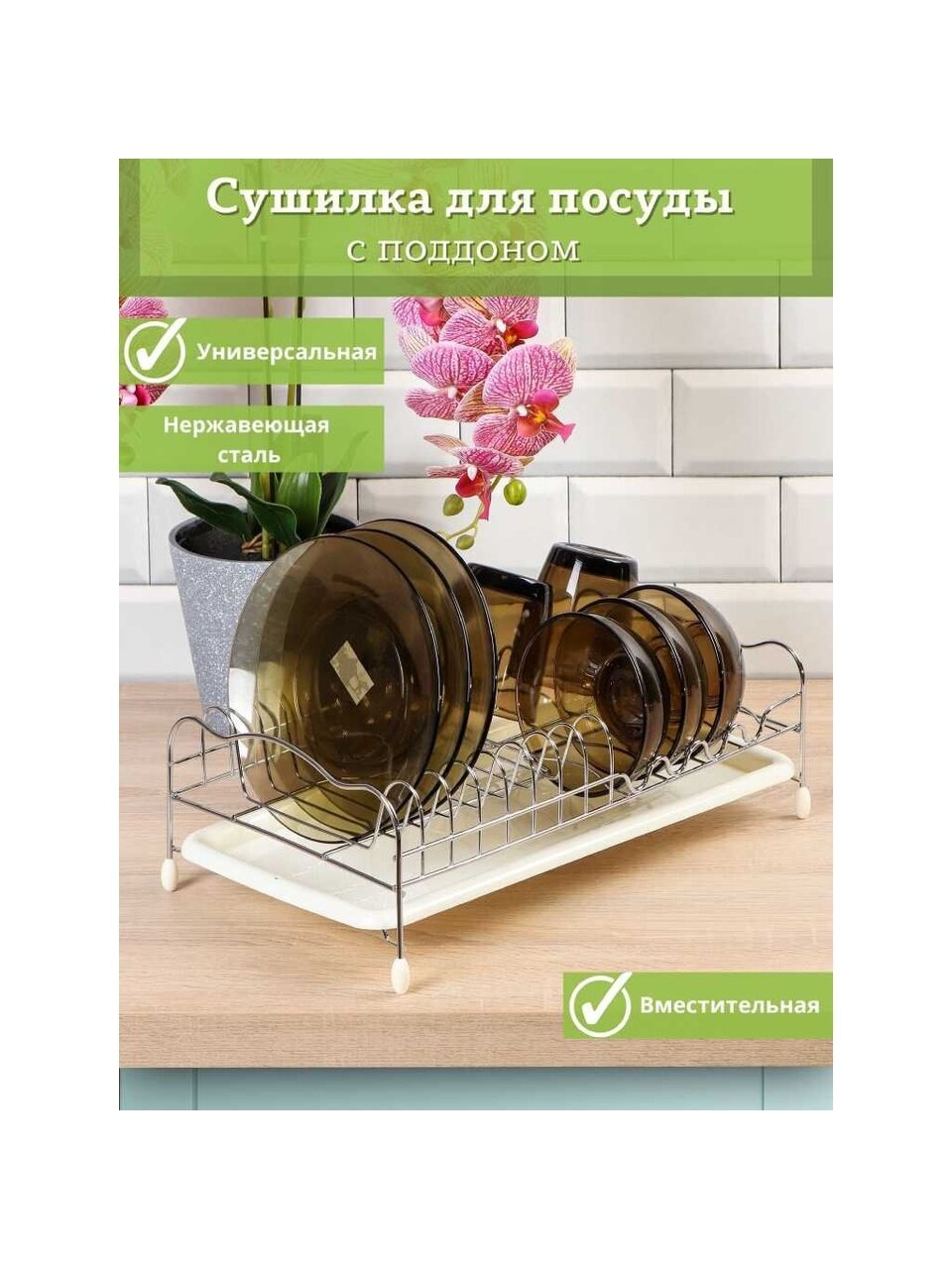 Сушилка для посуды с поддоном – практичное приспособление для хранения посуды после мытья. Ее конструкция создана таким образом, что позволяет устанавливать тарелки ребром, это способствует быстрому стеканию воды и высушиванию. Изготавливается из стали с полимерным покрытием.