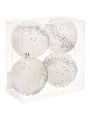 Ищете, какие елочные шары выбрать для украшения елки дома или на улице? Этот набор из 4 белых шаров диаметром 8 см выполнен из прочного пластика и украшен серебряным декором с блестками. Материал не боится падений и влаги, поэтому такие шары можно использовать не только в помещении, но и на уличной елке или в детских комнатах. Благодаря подвеске их легко закрепить на любой ветке.
