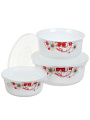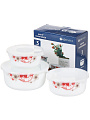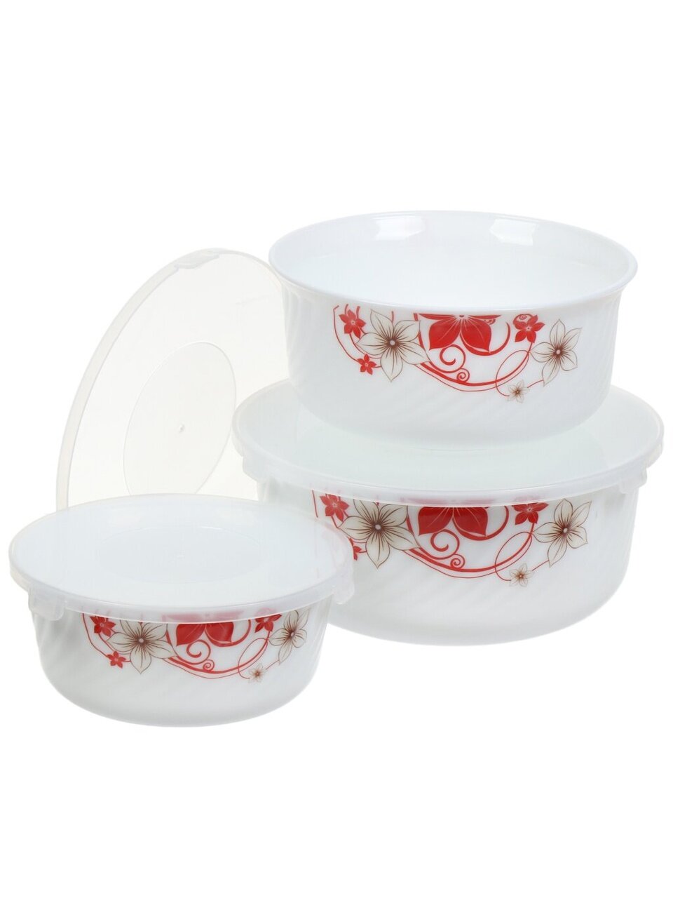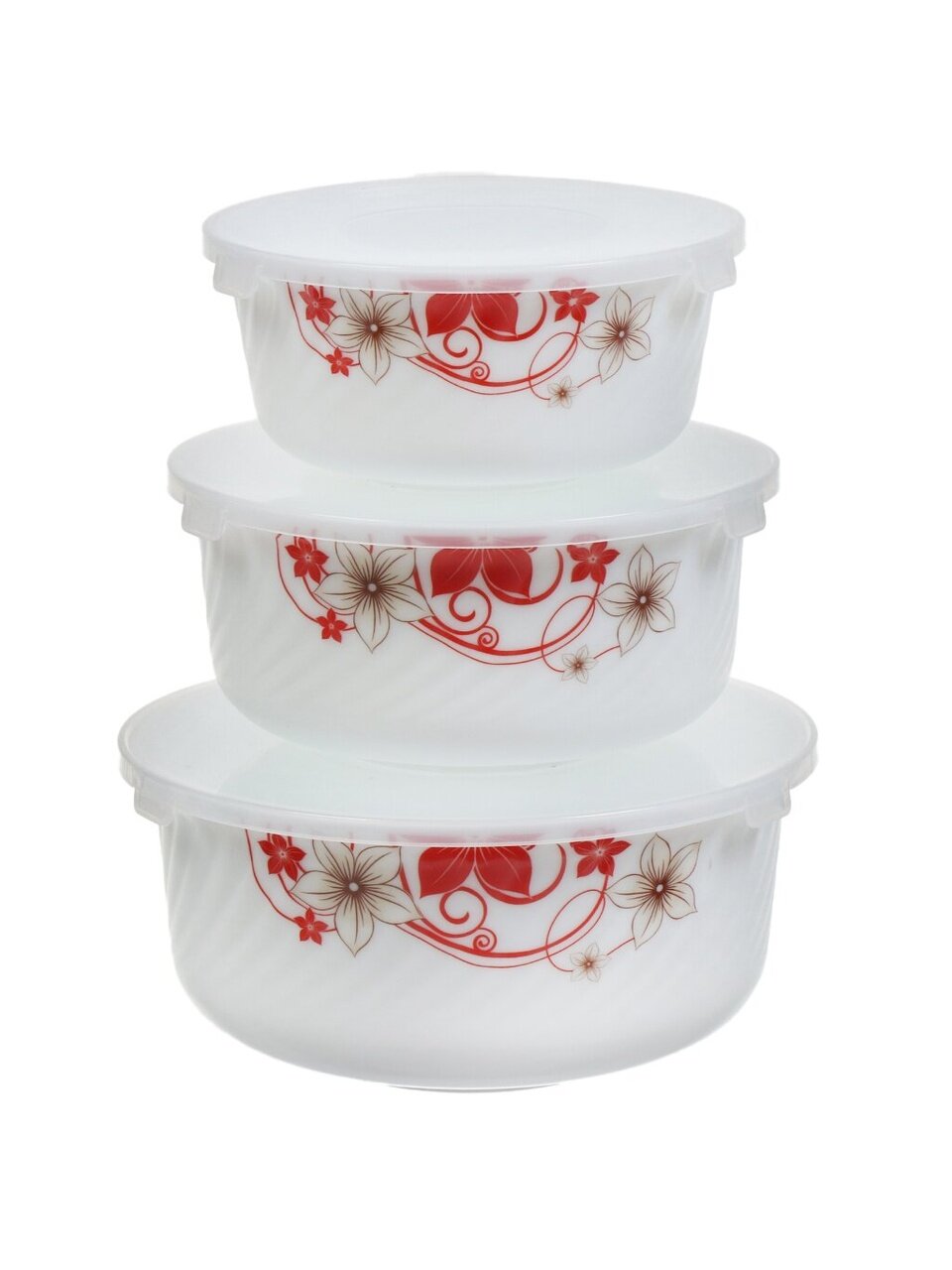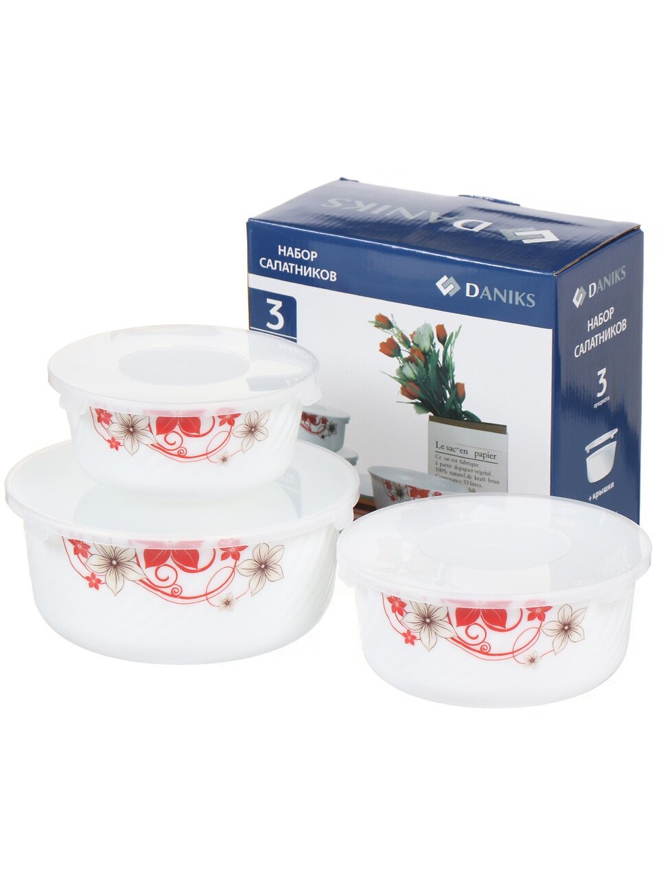 Салатники стеклокерамика Daniks Кармен 3 шт: круглая форма, 3 размера, герметичные крышки — удобно для хранения, сервировки и микроволновки.